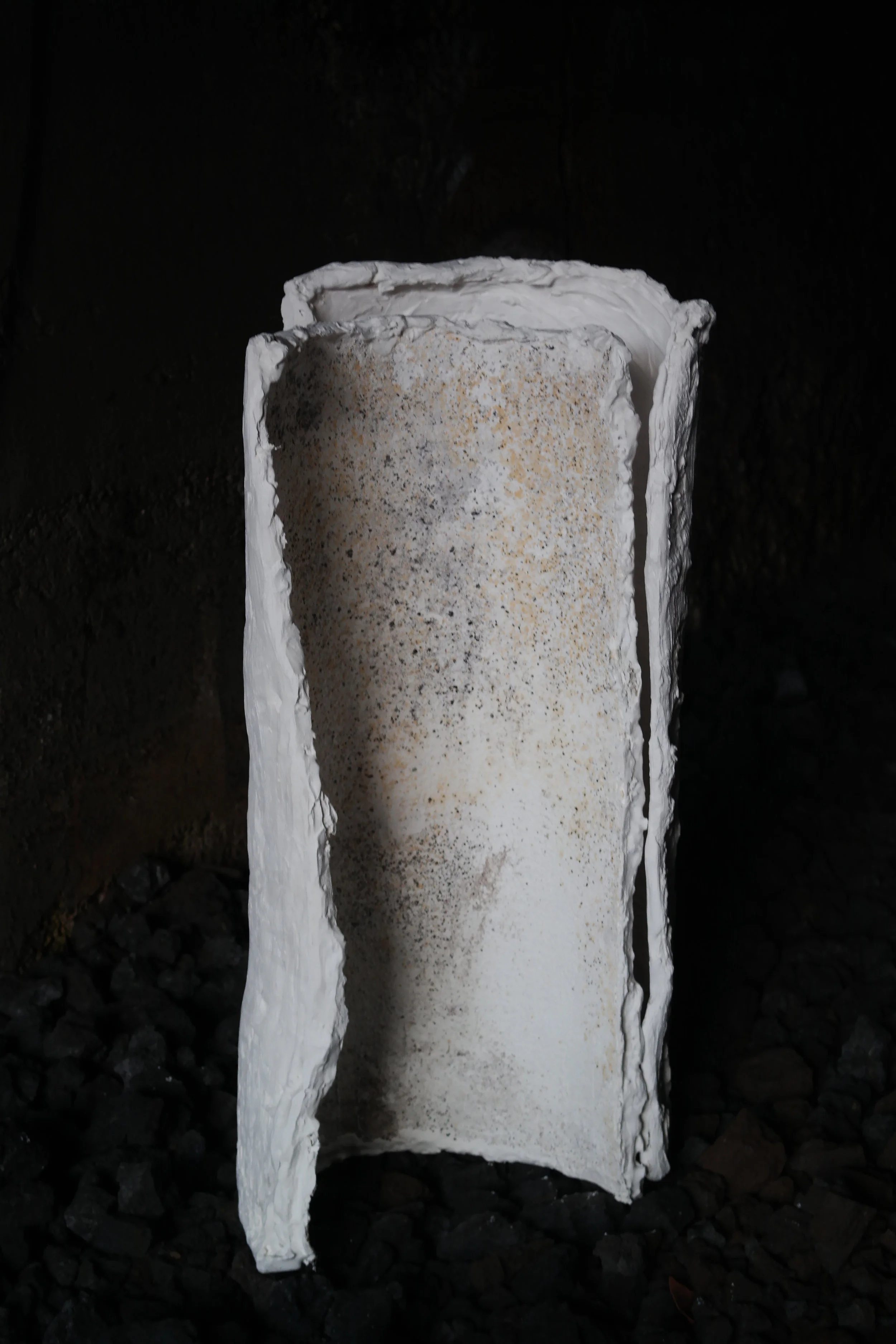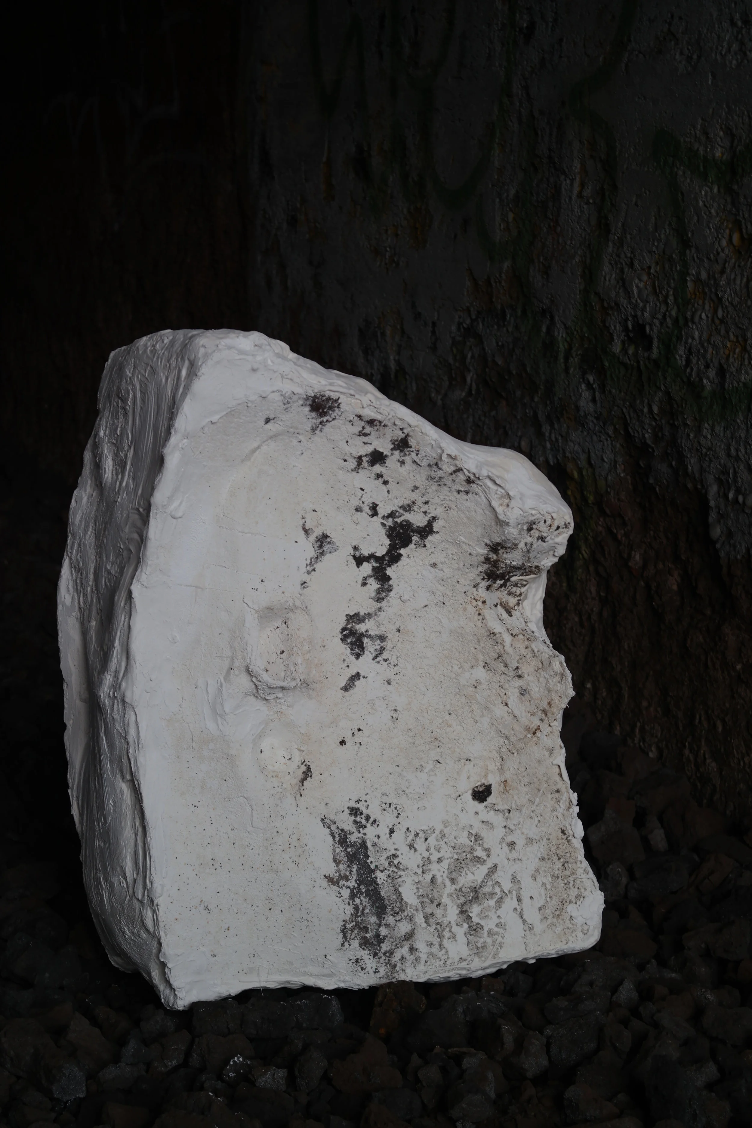 Features inherent to the plaster cast method, such as reversal, positive and negative, dissolution, inversion, and mirror image, are used to tell the story of the past. Preserving the residue of the past (impressions, grime, slag, and dirt), the casts invite the viewer to examine memories, meaning, identities and the history of the original elements.